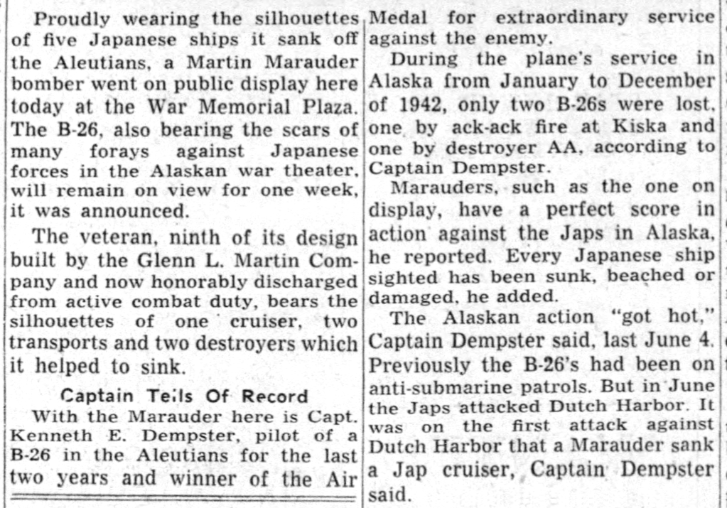 On the cover:"Old Number 9" was the ninth of 5,266 Marauder medium bombers built by the Glenn L. Martin Aircraft Company of Middle River. This particular Marauder flew combat missions in the Aleutians early in World War II. In late May, 1943 it returned to Maryland and was placed on display in downtown Baltimore between the War Memorial (pictured) and Baltimore City Hall. (Glenn L. Martin Maryland Aviation Museum, Middle River)