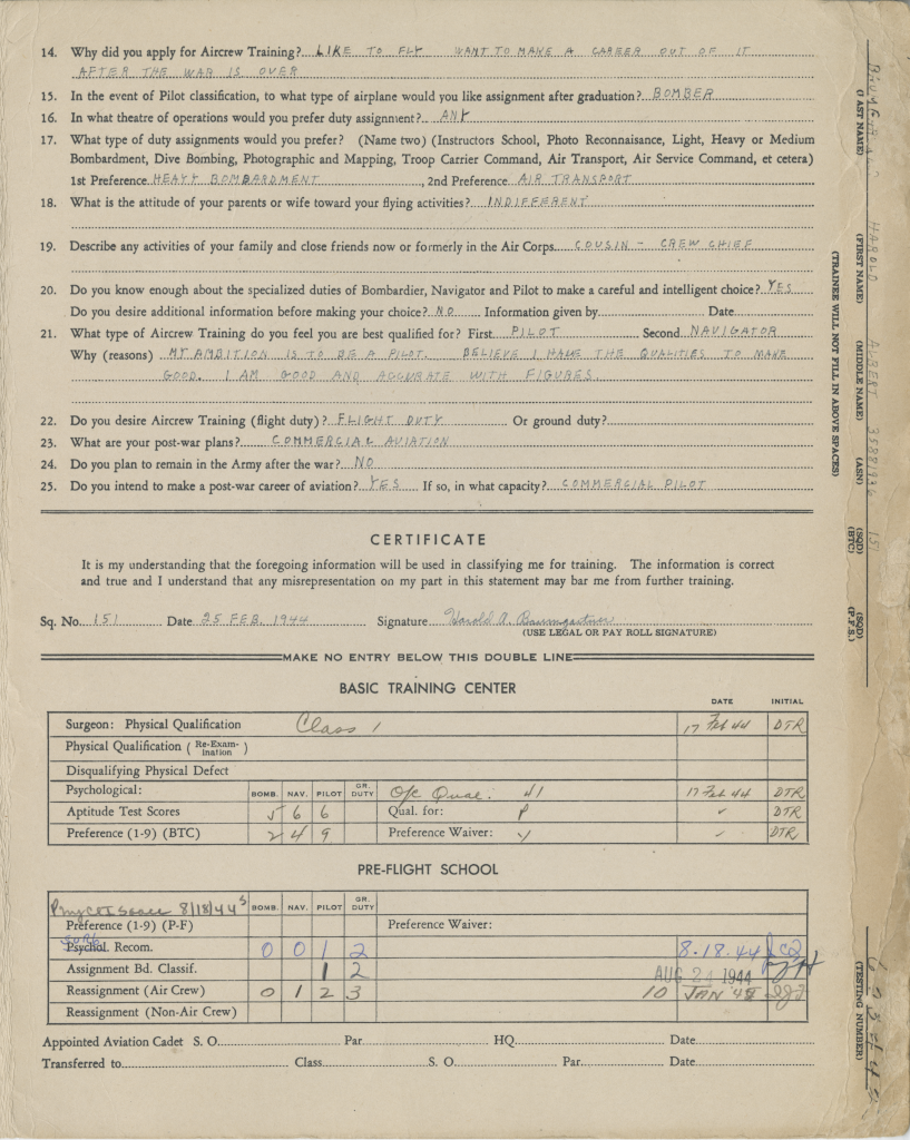 Air Force Historical Research Agency.) It is divided by subheadings based on each major period of the veteran's service history. With the first example, the situation was relatively simple, with only two different periods: training and operational.