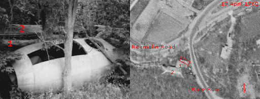 So after the previous post, I asked one of our museum volunteers who had lived on the West Side of Cincinnati whether he knew anything about Mr. Kleve. He said that he spoke with Mr. Kleve on a number of occasions and at one point he brokered a deal to get someone a pair of Stearman wing struts from Mr. Kleve's collection. According to him, the B-29 fuselage was stolen by scrappers, but is not sure exactly when it happened. However, he did say it was reported stolen and made the news. The fuselage was propped up on wood and when the wood rotted it collapsed. Apparently, over time, it slowly slid down a hill until, at the last time our volunteer saw it, it was pretty much in a nearby creek. The location was south of the intersection of Race Road and Reemelin Road.
