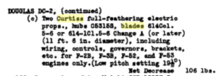 The engine does appear to be an early R-1820 with the ignition harness behind the push rods. I cannot find the details for the DC-2 (and derivatives) but the DC-3 TCDS does allow the use of 'Curtiss propellers, hubs C532D, blades 89305' which, I think, is a similar configuration. I also found this in another publication: