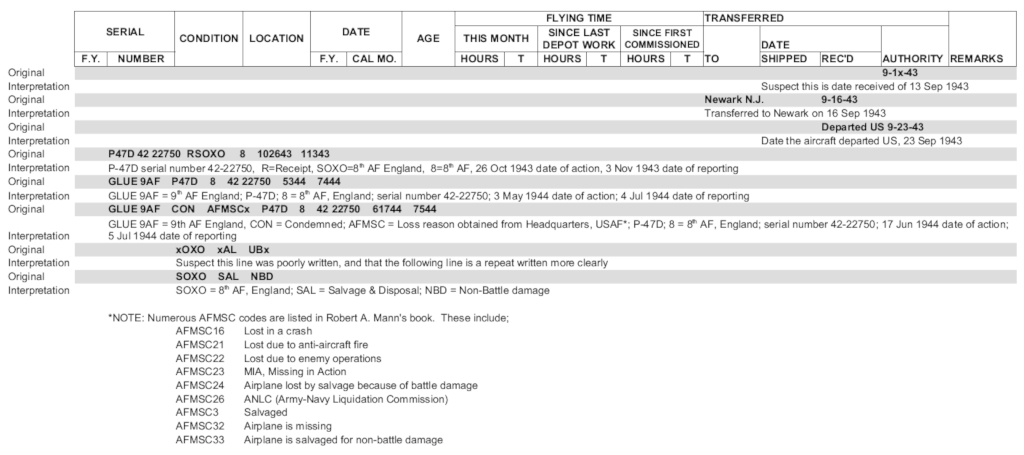 Best attempt at deciphering the record card. Date of loss of aircraft likely 17 Jun 1944 (or at least date deemed condemned) .