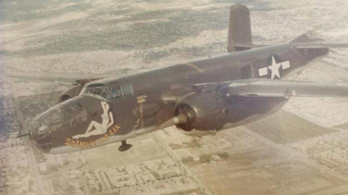 I'm surprised that no one else chimed in on this reference. This was from the short lived TV Show "Salvage One" where Andy Griffith plays a junkyard owner. I don't remember the gist of the series, but I know in one episode, he builds his own rocket which takes him into orbit. In another episode, they find his B-25, which was part of the Tokyo Raid, still intact in China, so he goes to fly it out. Problem is that it is guarded by a Japanese soldier who is still following his orders to the letter to guard the plane. There were two B-25s in the episode...the aforementioned Shangri-La Lil, and a second one that Andy Griffith practiced takeoffs with. Anyone know which two these were?