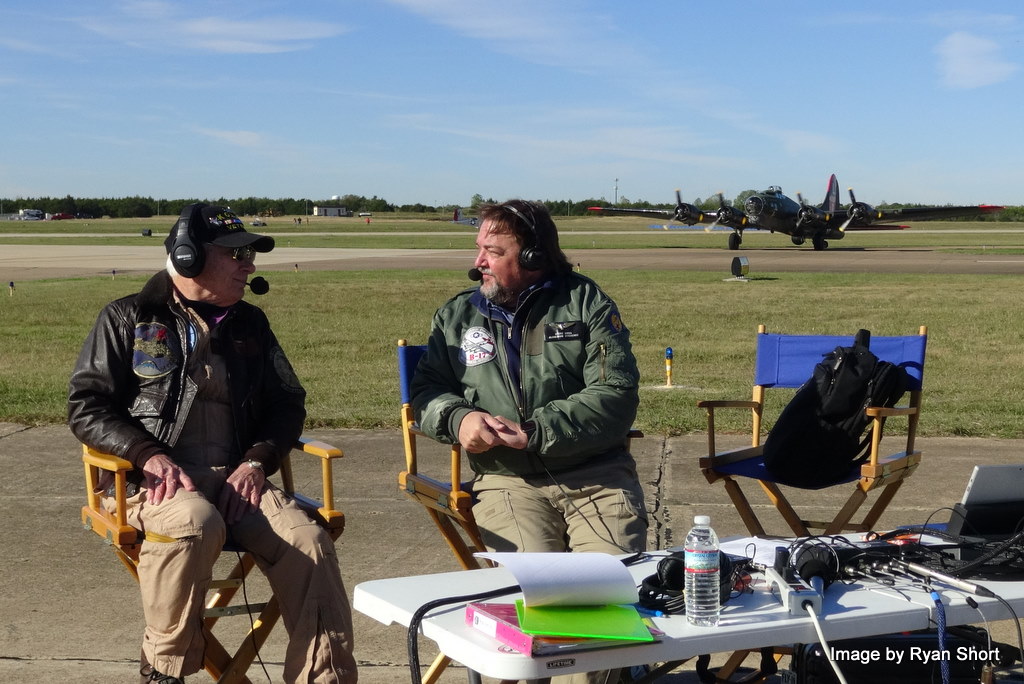 I'd like to offer that the reason airshows are important, is because of the people, and their stories. One of the crewmembers who perished, sadly, was Dan Ragan, who was a veteran who had served in the same unit that Texas Raiders flew with in the Navy. He gave a genuinely wonderful talk a few hours before the accident. Here's a shot from his interview with Texas Raiders taxiing in behind him.