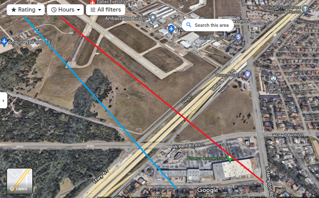 https://youtu.be/Qfz7eFSX_FU, the attached photo shows the fighters path in blue, the B-17 in red, point of impact was just inside the airport boundary fence.