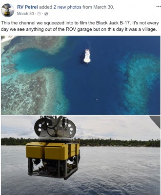 I managed to grab some screen shots of their Facebook page and attach them below for non users. FB members can go directly to the R/V Petrel account and scroll down the to the original posts from 30 March 2018 using this link ...