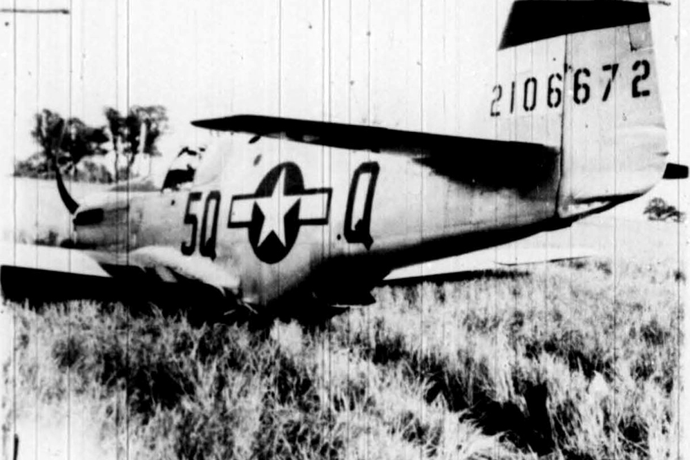 North American P-51D-10-NA Mustang 44-14368 (370th FS, 359th FG, 8th AF) in taxiing accident at RAF East Wretham, Norfolk, England Feb 3, 1945. Pilot survived, aircraft badly damaged, unknown if repaired.