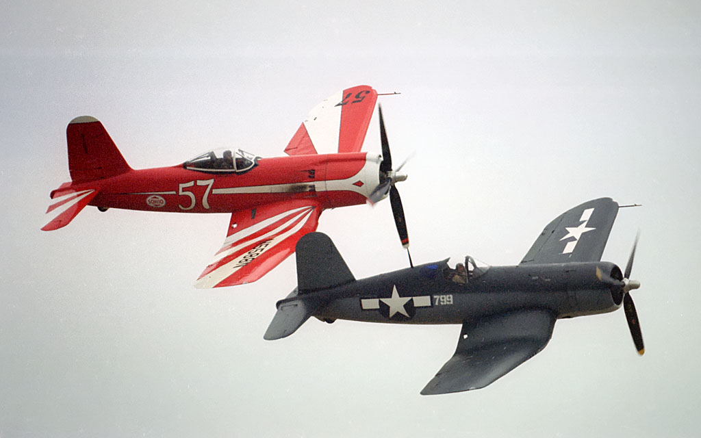 Bob Pond was still alive and Palm Springs contributed the B-17, Hellcat, P-63, and Tigercat. There were 3 Hellcats that year, with Friedkin's and CAF's joining Pond's. Four Corsairs including POF's F4U-1, F2G race 57, and the FG-1Ds that later went to Rod Lewis and Vintage Wings of Canada.