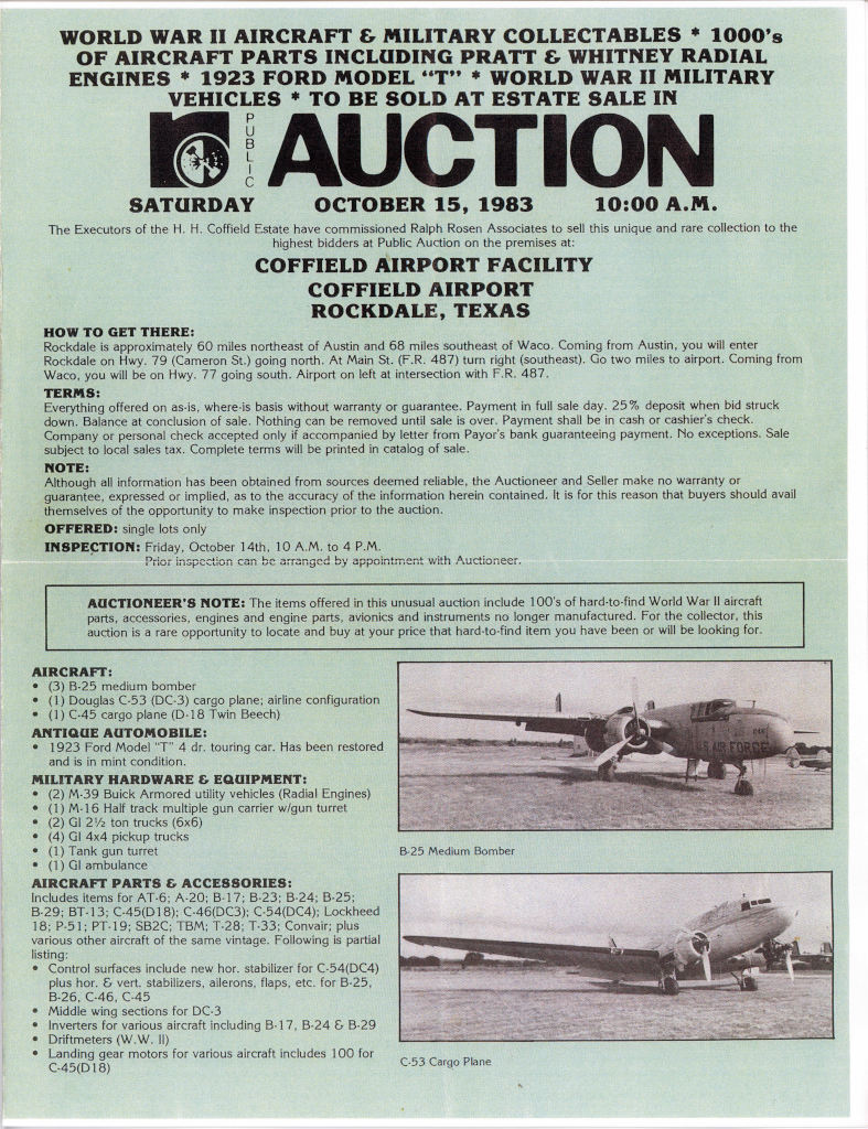 ^^^ This one missed the auction; Aero Trader bought it in 1978. The Registry lists it as sold at the 1983 auction, but the auction list only mentions three B-25s (Scott R. please check?).