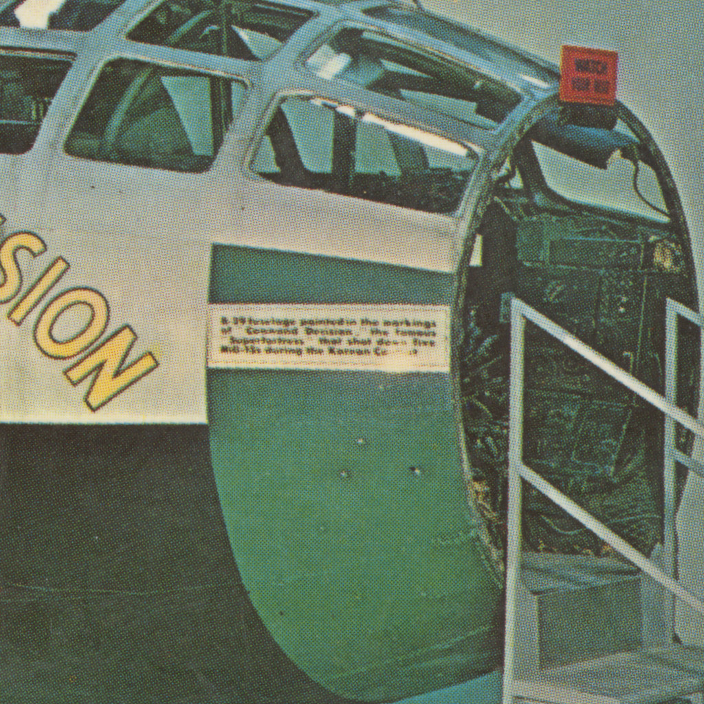 The B-29 flew the duration of the Korean War, from 1950-1953. During that time, B-29s flew a total of 20,000 sorties and dropped 180,000 tons of bombs. Although 57 Superfortresses were lost to enemy action, B-29 gunners are credited with 27 enemy kills. The most notable of these was the B-29 named Command Decision, with a record five MiG-15 kills; the world’s only bomber “jet ace.”