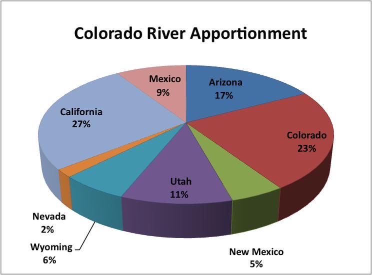 Start with searching on the "Colorado River Compact". It is right in a Wikipedia article...but there is certainly a lot more information from a wide variety of sources if you don't like Wikipedia. The data from the Compact lists the apportionments for all of the states in the upper and lower basins, both in the original compact in the 20s and the re-negotiation of it in the 40s.