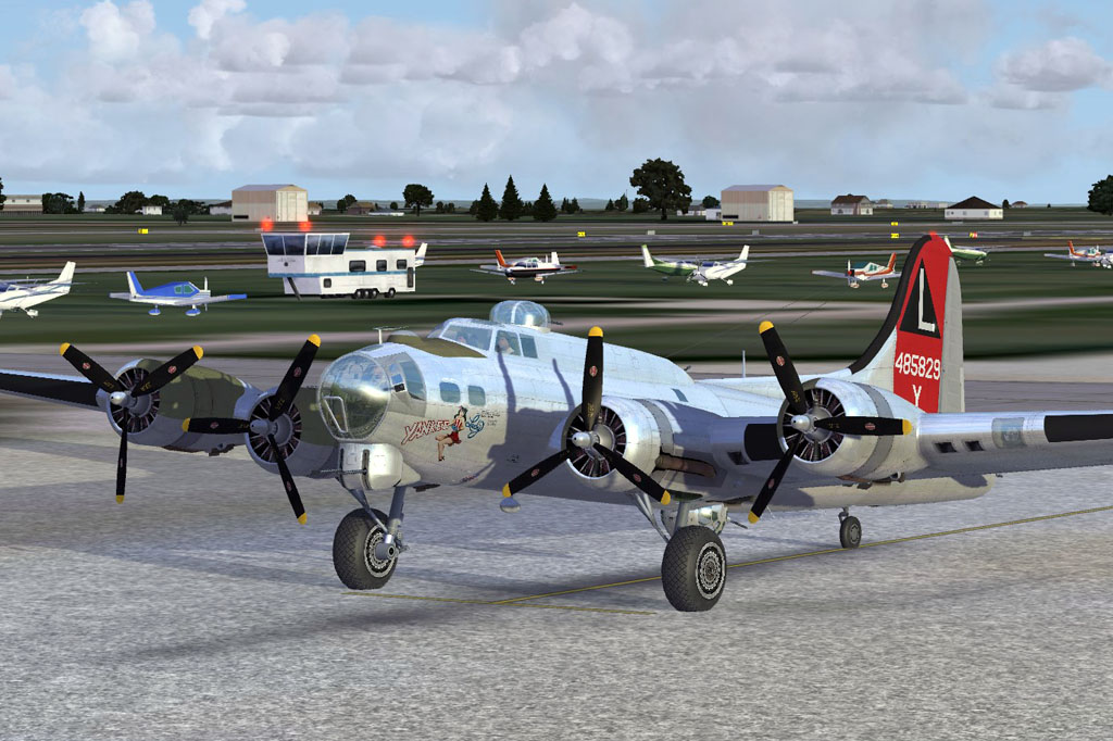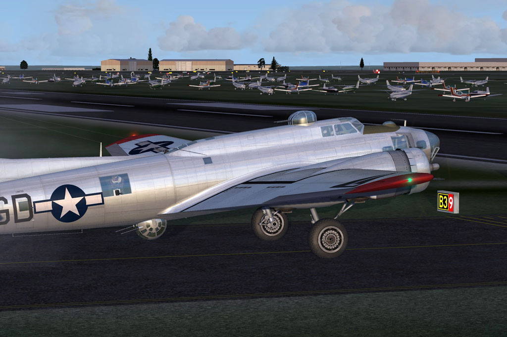 Using the same scenery as shown in my B-17 pics above, here I am looking for parking in my Swift. I was tempted to write "Vintage Parking" on a post-it and stick it in the corner of my monitor to alert the marshalers.