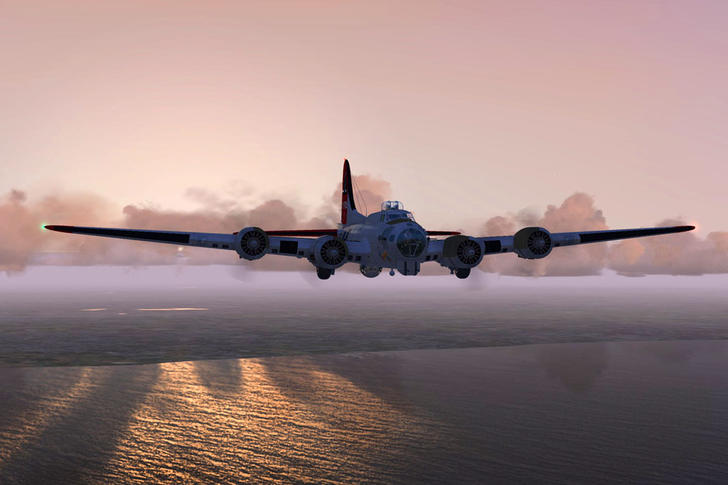 It's always a big moment at OSH when one of the B-29s takes time off from ride-selling at a nearby airport to drop in and attract admirers in the central square. The Virtavia B-29 is fun and challenging. You can see here that the Red Barn and the rest of the antique complex are not represented by 3d buildings, although they can be seen on the satellite image from altitude. This scenery package already causes a hit on frame rates, so I wouldn't want to add too much detail, but that is one thing that I would add.