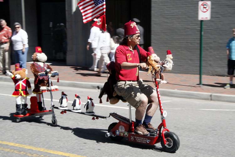 The Shriners here had the little yellow (yeller) 'Vettes, also little NASCAR replicas, big motorcycles, bikes, and these Asian guys riding these scooters, plus a