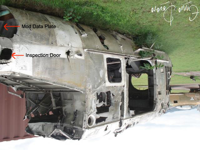 In addition to CH-19 (HRS-3), BuNo 130228; BuNo129043 was also transferred via the Military Assistance Program in 1964 or 65. Sadly indeed, the crashed fuselage is missing both the primary and modification data plates. It appears the skin where the modification plate would have been attached - directly in front of the tail boom connect point - was ripped from the fuselage.