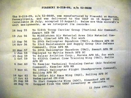 The Travis AFB Heritage Center CH-21B s/n 52-8688 located in Fairfield CA.
