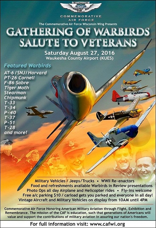 The Wisconsin wing of the CAF is holding it's first Gathering of Warbirds event at Waukesha's Crites Field (KUES). There has been a great deal of work put in to this by the wing, stop by and enjoy!