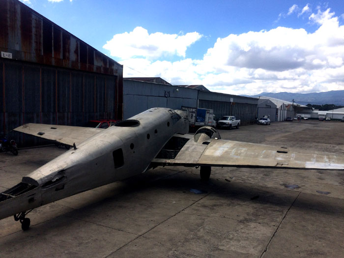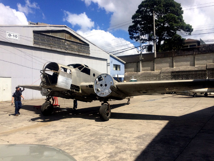 • It was based in San Angelo, Tx in a bombardier training squadron. It was sold or given to Guatemalan Air Force in the 50's. An American mechanic -friend of mine- bought it in the 80's and hangared it since then. The airplane -engines and airframe- is apart but complete. It has very little corrosion on both bottom wings skin. Today is in Guatemala City at La Aurora intl airport.