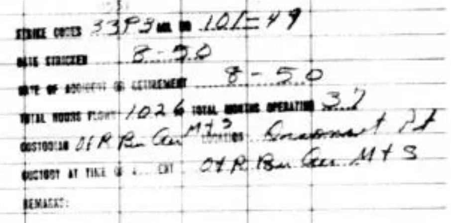 Anyone have an original or good quality copy of an aircraft history card they can post? Specifically, where the stamp and the text in the very bottom right is legible.