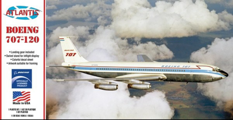 Also, the Revell 707 in 1/139 is coming out in a Boeing house color scheme. The scheme seems to be a Pan Am window stripe with an added red stripe and different tail markings. I don't think it is a prototype scheme, rather I would bet it was a Pan Am jet bailed or leased back to Boeing to take to a trade show.