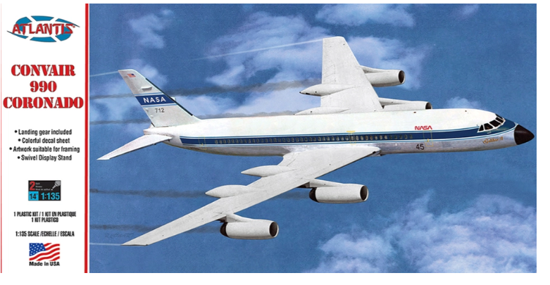The old 1/135 Revell Convair 990 is coming out with NASA markings. Atlantis has been very upfront about the high license fees being charged by airlines if a kit maker wants to include their markings. So, expect Atlantis to do a lot of governmental and prototype markings. Since serious airliner builders will likely spend the money with aftermarket decal shops for whatever livery they want, the limited decal choice isn't a terrible thing, it helps keep the price of the kit low. After all, I'd guess most buyers are going to be kids (or parents/grandparents buying for kids), not IPMS members!