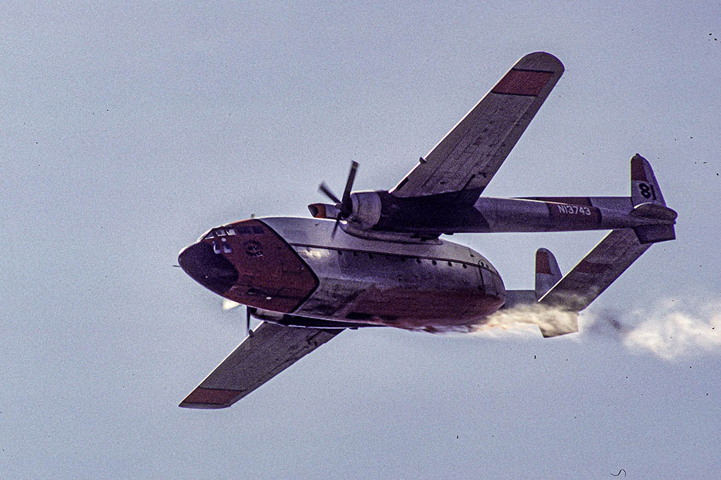 These are marked "Sept 1979 along the central California coast". I rather vaguely remember driving along and seeing this little airfield -- mostly deserted, with this big ugly slug of an airplane sitting there. There were a couple of guys sitting around playing cards in a little office next to the hangar and borate tanks and fuel area. I asked if I could take some pictures of the airplane, and they said that would be fine. So, owned by Hemet Flying service -- Tanker # unknown and airport unknown.