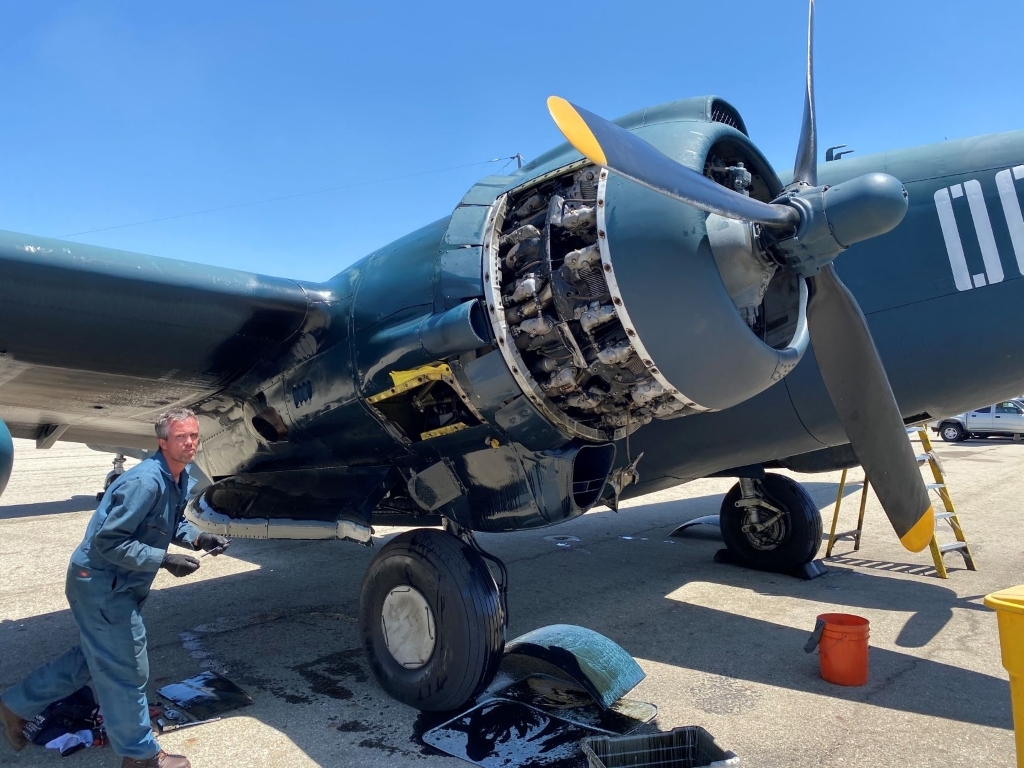 Sadly we were on our way to the 75th VE day event when we broke a connecting rod on our right engine in the Harpoon. We landed in Chino airport and parked at Aerotrader. Carl and Tony were so very helpful and we are grateful for their kindness. The repair required a full engine teardown which was not possible in the time so close to the event. It was really hard as so many of us busted our backsides to get the Harpoon ready for the trip.