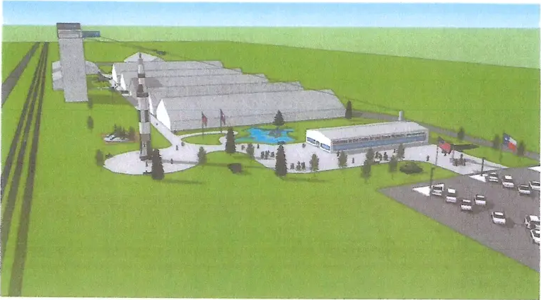 The Texas Air & Space Museum has plans to renovate their 8 existing buildings and grain silo as well as build a welcome center/library/classrooms/conference building on a roughly 20 acre lot next to the Rick Husband Amarillo International Airport: