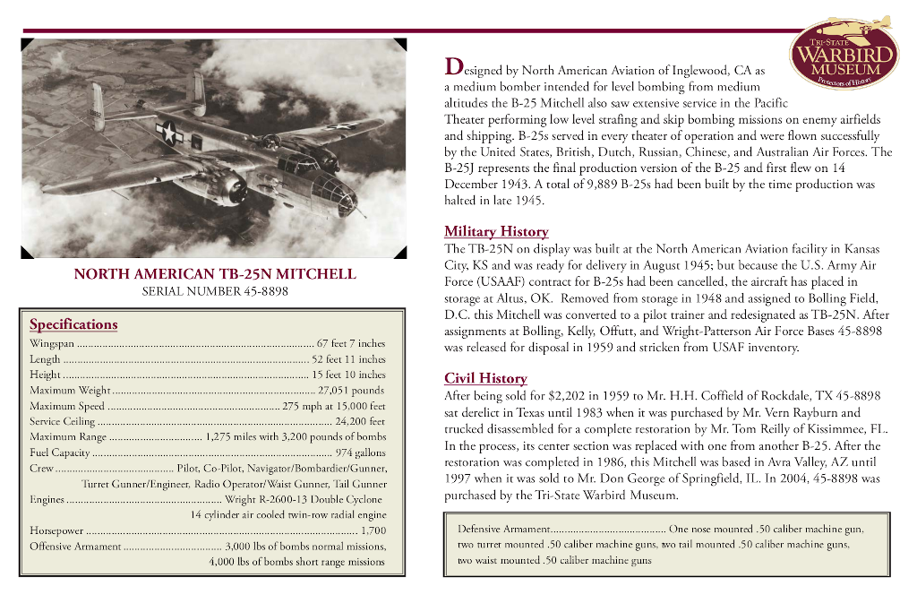 _________________ Tri-State Warbird Museum Collections Manager & Museum Attendant Warbird Philosophy Webmaster