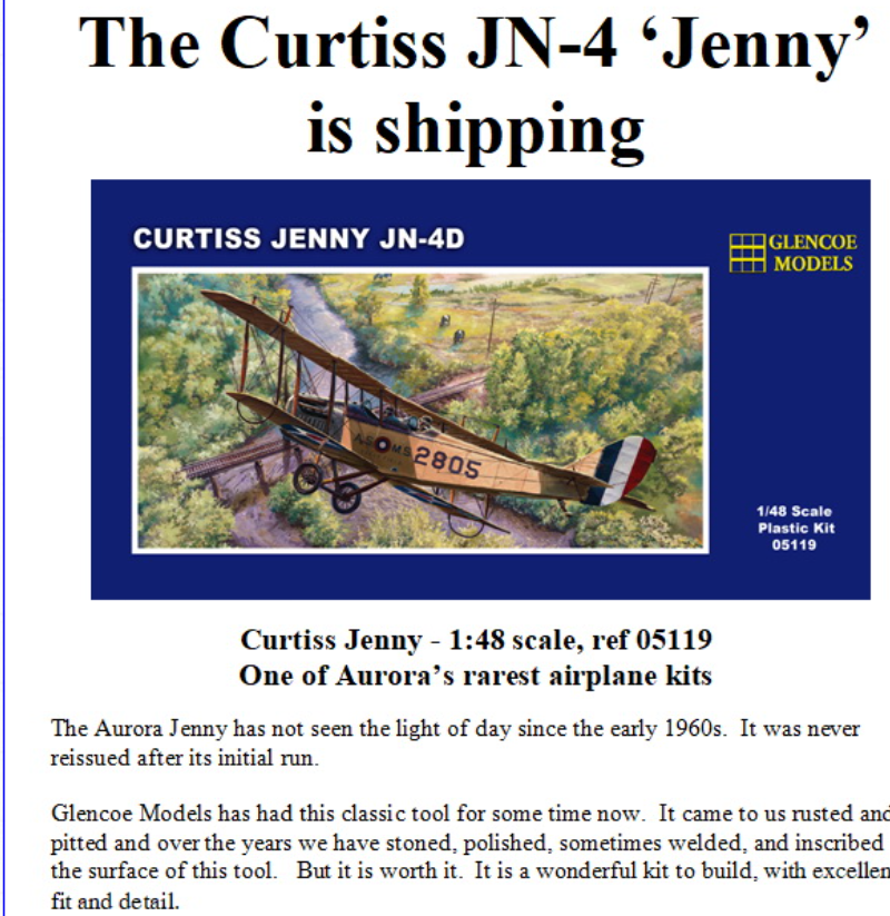 Now they have reissued the Aurora JN-4 "Jenny".
