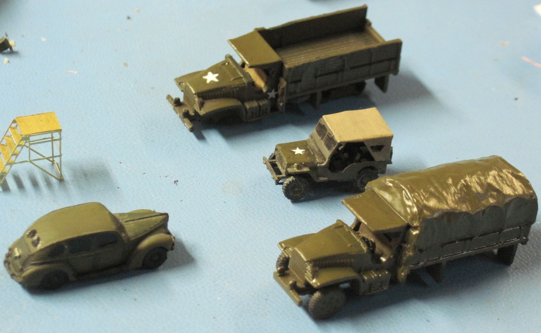 We put the extra Jeeps and Bikes into the diorama tonight, along with the first print version of the backdrop mural!