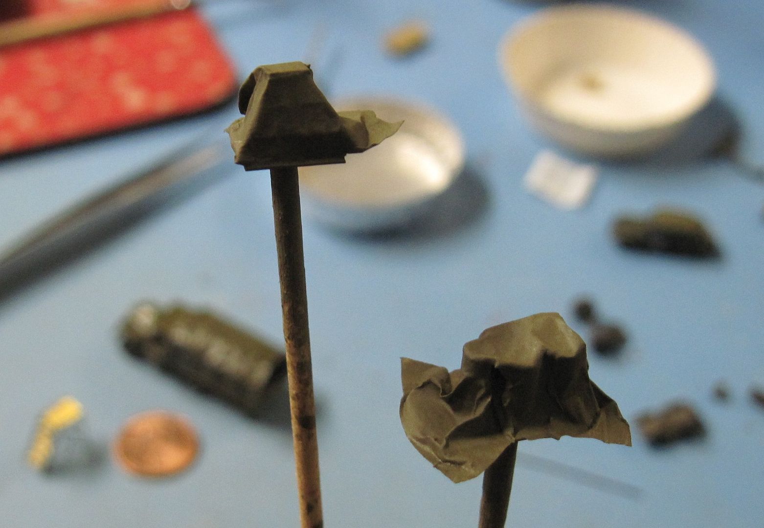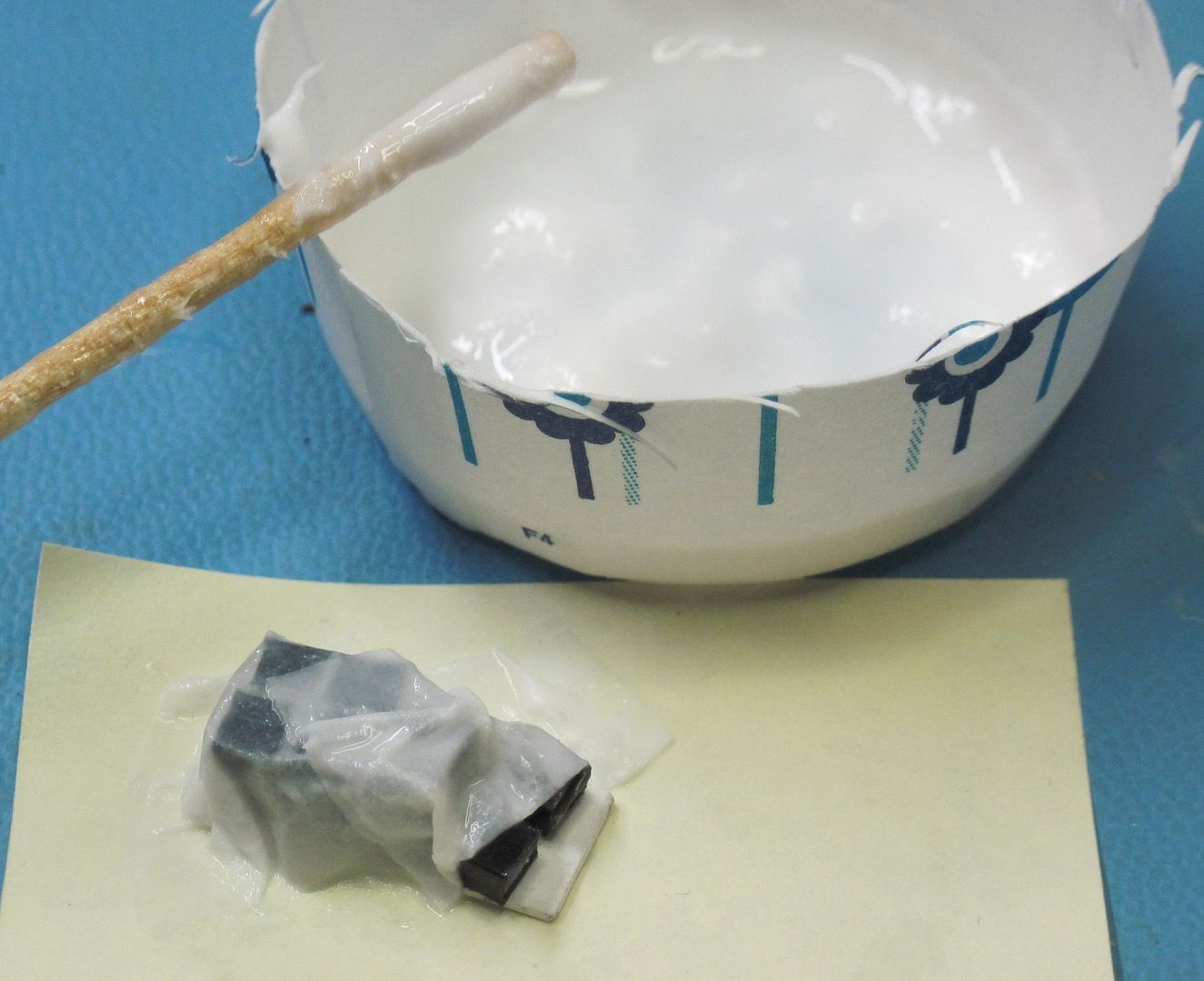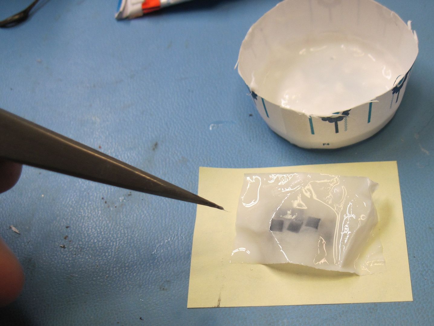 First he started with small cut off bits of plastic. In this case Raychem he "liberated" from work and glued it onto a thin sheet of styrene.