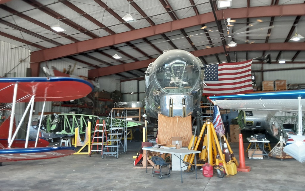 My day job took me to Daytona Beach to inspect some cessna 172S models and I had a late flight out, so I was able to look around a bit and ended up at American Aero Services. Nice bunch and I was told to look around all I wanted. The Collings B-17 was still in pieces and appeared that not much was being done, the TF-51D was there for Maint, the B-25 was stuffed in the back of the hangar. The highlight was getting to look at the PBY they are doing, it is going to be a fantastic plane when finished, with all the antenna wires on it it looks like a flying clothes line. They are somewhat of a PBY center with 3 airframes there. No sign of the TP-51C or the B-24. In the PBY hangar there was some tail assembly pieces that look like they were from a He-111 recovery.
