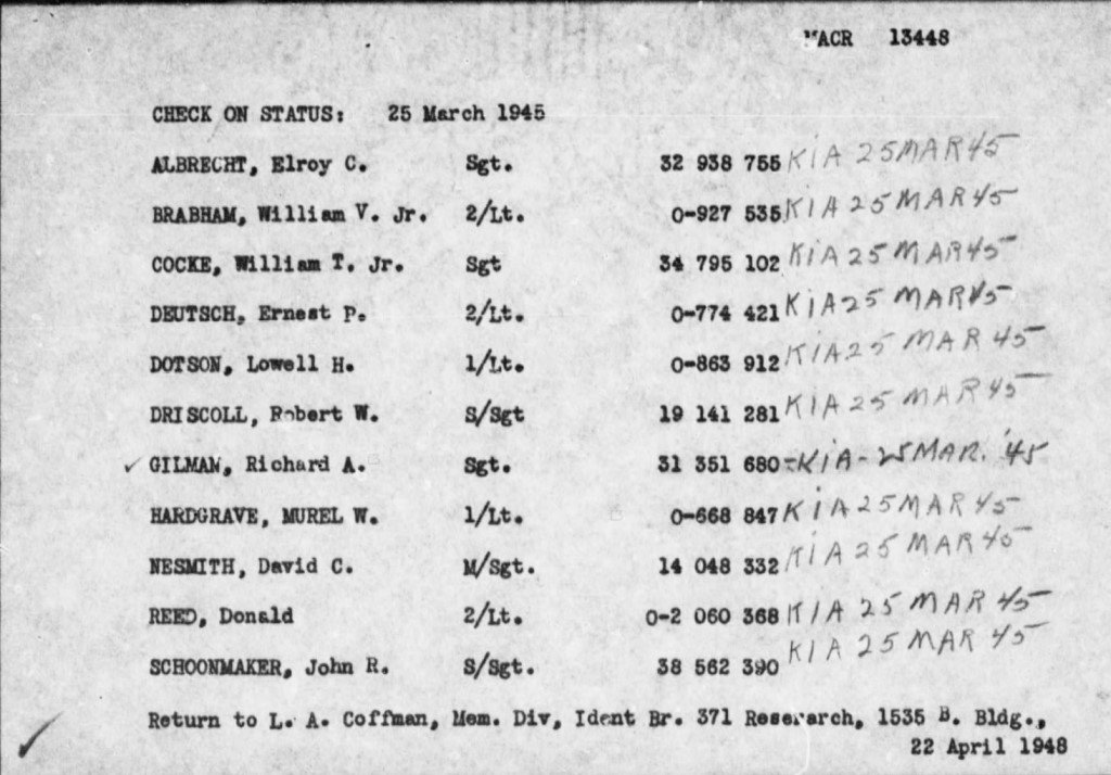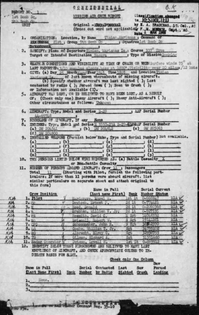 The info below is from a Japanese site (don't remember the name) on Aircraft Losses over Mainland Japan. The MACR is from Fold3.