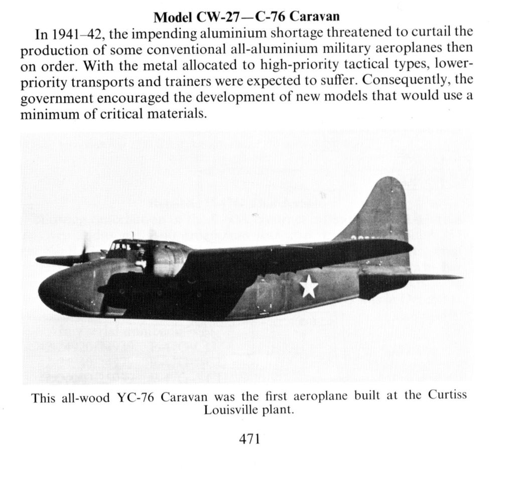 From Curtiss Aircraft 1907-1947 by Peter M. Bowers, 1979, 637p. from page 471, photo of YC-76 Caravan in flight. A little more info and specs are on the next two pages, not shown here. Randy