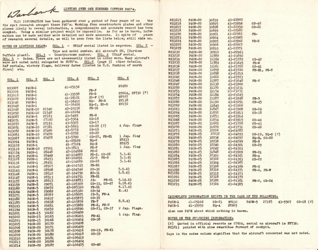 I don't have everything, there are still some significant gaps that I'd like to fill, and flesh out (such as names of the ship which cargo was P-40's to Russia, code/serial match ups are always a problem area, Russian P-40 operations in other areas than the Northern Front etc), as well as finding pictures of them (I have a large number but the holy grail would be a picture of every P-40 airframe (a pipe dream but you have to have hope)).