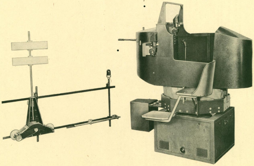 National Museum of the United States Air Force wrote:This pilot testing equipment was used at the School of Aviation Medicine, Randolph Field, Texas. The candidate would attempt to hold an unbalanced fuselage pointed at a light target lamp in front of them in order to test motor skills.