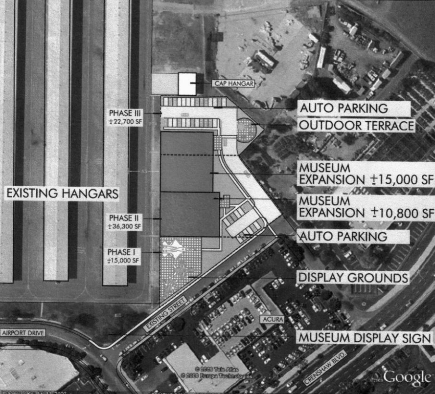 The Western Museum of Flight exists in very cramped quarters, so it is unsurprising they had a rendering for an unrealized move to the southeast end of Zamperini Field in a newsletter from 2010: