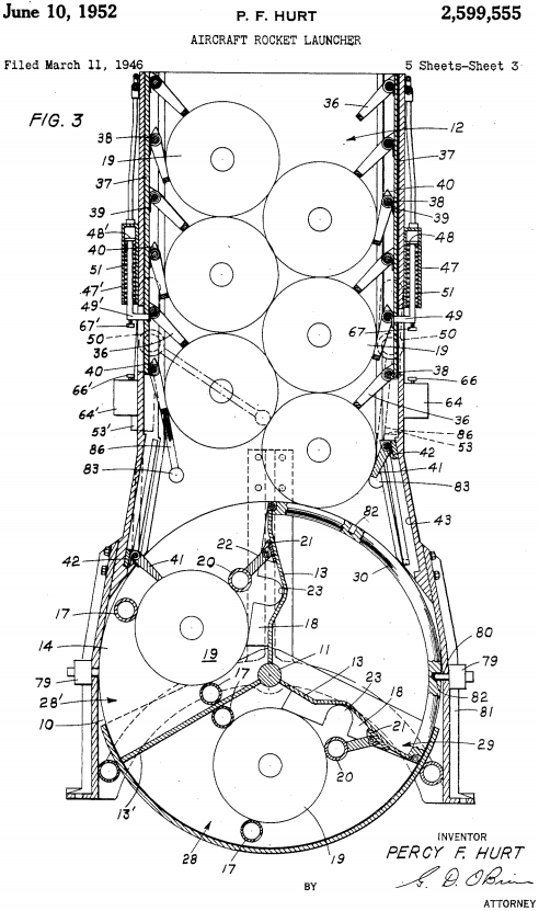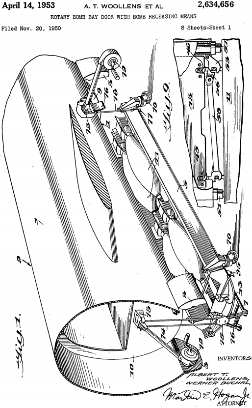 Scott Libis wrote:In what was thought to be the answer to high level, high speed bombing stability, Martin engineers Werner Buchal and Albert Woolens fitted the XB-51 with a revolutionary new rotating bomb-bay door. Internally-stored bombs or rockets would be mounted to the door itself, then prior to reaching the target the door would be rotated 180 degrees open and locked into position. This advance meant that the aircraft did not have to slow down to open the bomb-bay doors, as the gap between the fuselage and the door was only momentary. Conventional bomb-bay doors remain open for the entire bomb run, generating considerable buffeting, which in turn reduces stability and bombing accuracy. By maintaining maximum speed[,] the aircraft's vulnerability to enemy fighters would be greatly minimized. Another advantage was that spare rotating bomb-bays could be pre-loaded off the aircraft, and be ready for quicker mission turnaround times (much like a speed-loader for a revolver).