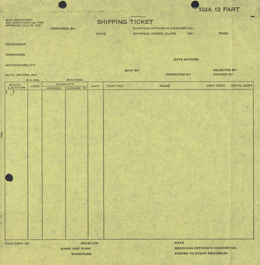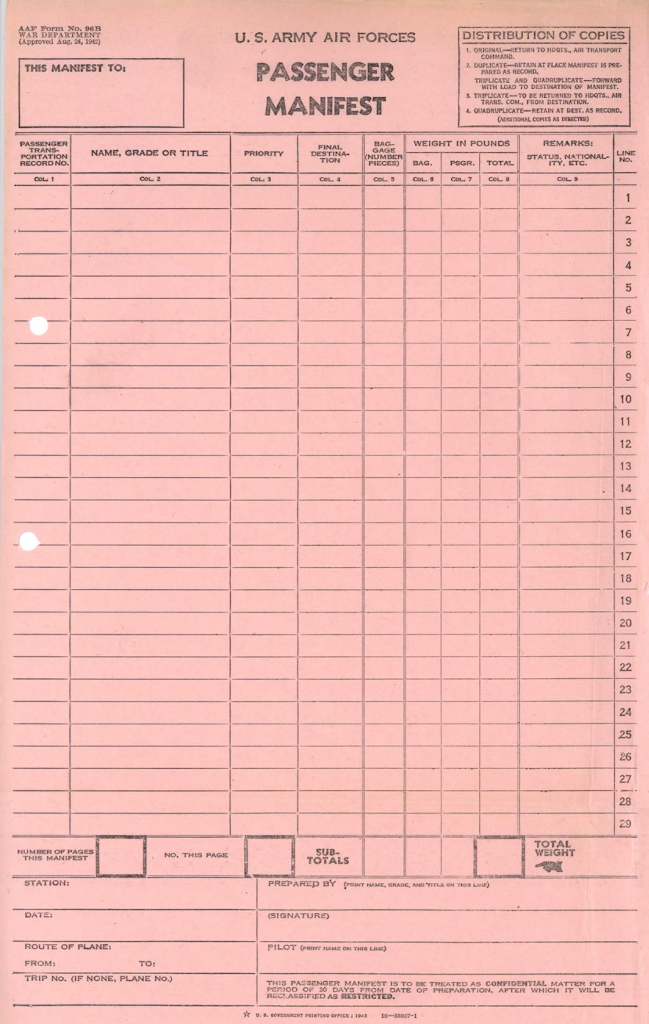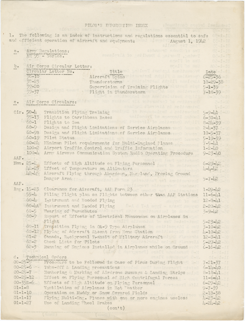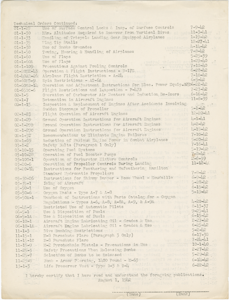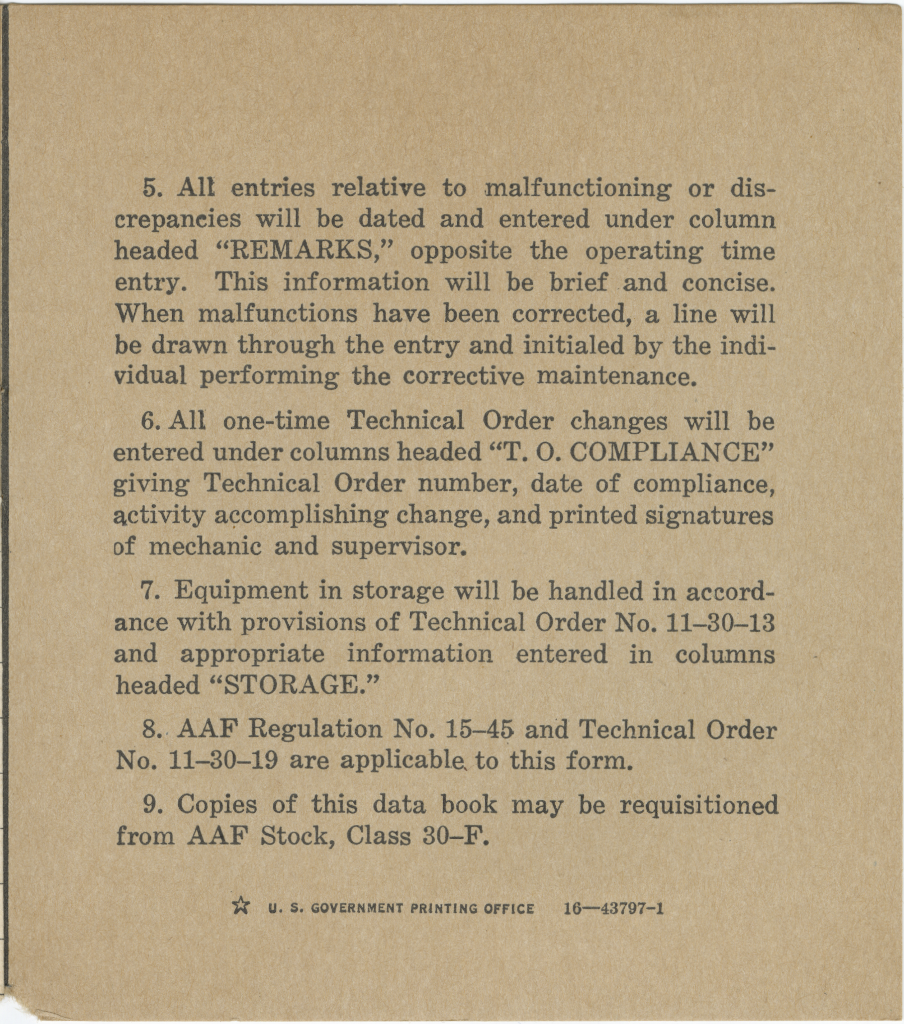 Although it's not a form, the following "Pilot's Information Index" that belonged to Russell B. Witte, Jr. is an example of the amount of paperwork pilots had to deal with: