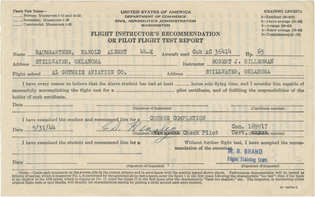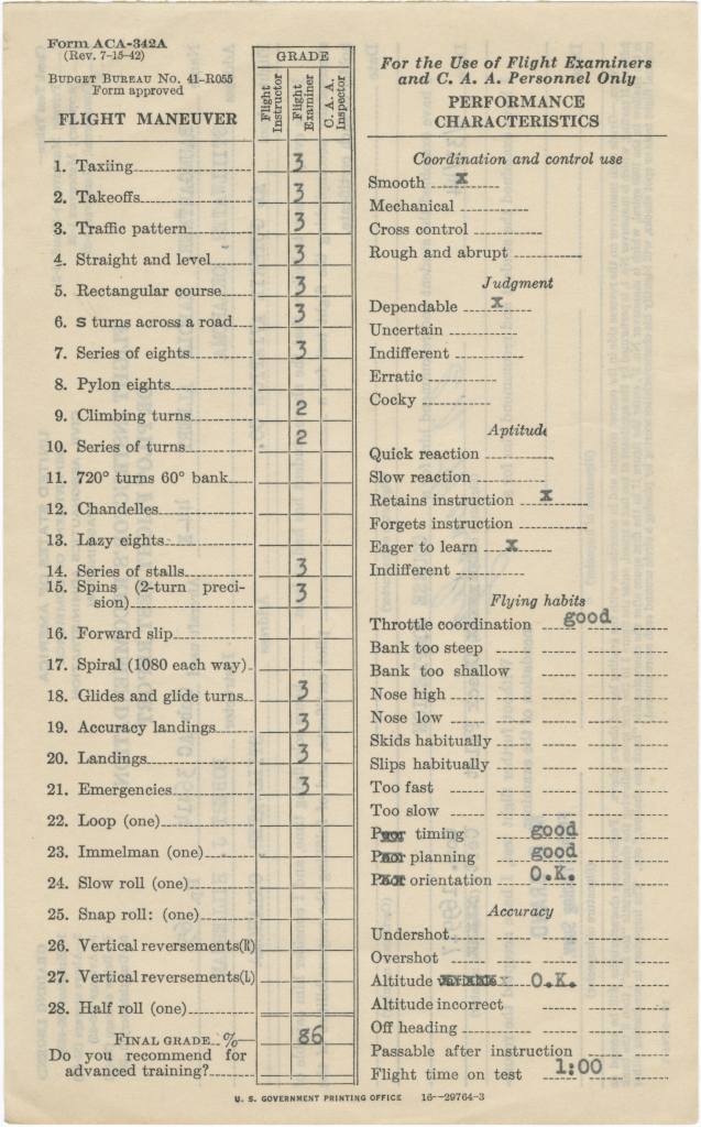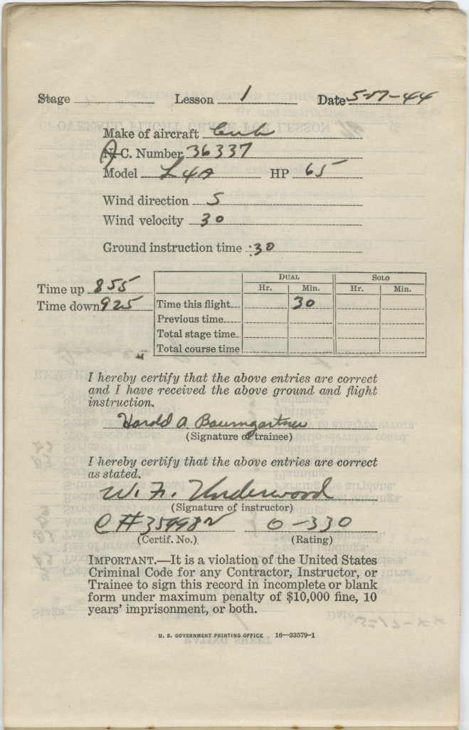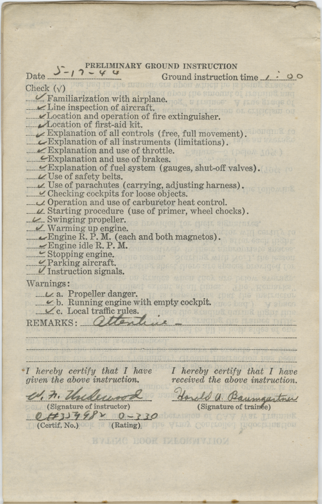 More from the Harold A. Baumgartner Collection mentioned in a previous post. This time its Civil Aeronautics Administration forms from training. It is of course only part of the booklet, but the remaining pages are simply duplicates of the fourth and fifth images. As before, the images in the following post were found inside it: