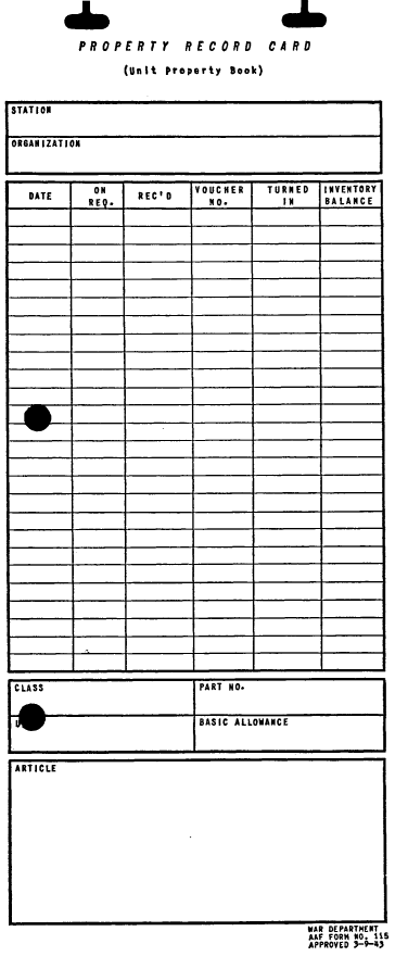 • AF Form 115 - Unit Property Record and Equipment Lists