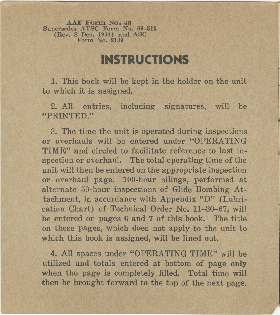 AAF Form No. 45 - Bombsight Equipment Data Book