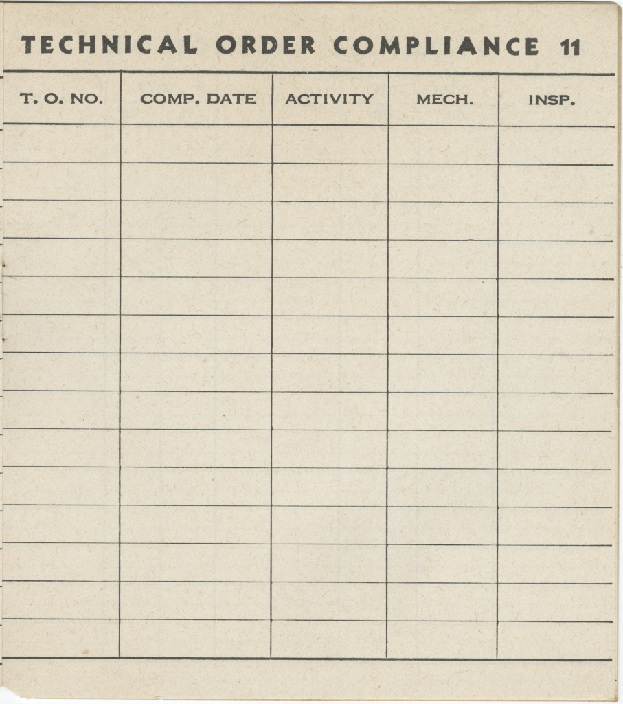 A document from 1948, Technical Publications for Aircraft Files, T.O. 01-1-10, describes the locations in which various forms are to be kept and the relevant references: