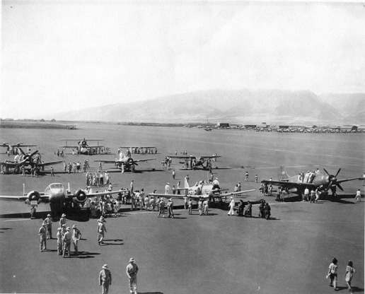 Great photos - got any of the same time period from NAS Kahului also on Maui? My Grandad, then LT(j.g.) Jack Scott, was there there finishing up workups in F4U-4s with Bombing Fighting Squadron NINETEEN (VBF-19). He was a dive-bomber veteran who had previously passed through Kahului in the spring of '44 on his way to WestPac flying SB2Cs with VB-19 aboard USS LEXINGTON (CV-16).