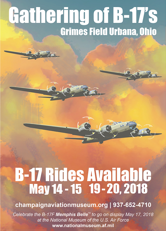 As stated Yankee Lady will be at Grimes. The only other B-17 to announce they will be in Dayton that week is Aluminum Overcast on May 19-20 and at Wright Brothers Airport, which is about 60 miles south of Urbana. A couple of B-17s that won't be there are Texas Raiders that is scheduled to be in Albuquerque May 14-17 and Amarillo May 18-20 and 909 that will be in CA at Santa Ana May 13 and Mountain View May 18-26. None of the other B-17s have put out their 2018 schedules.