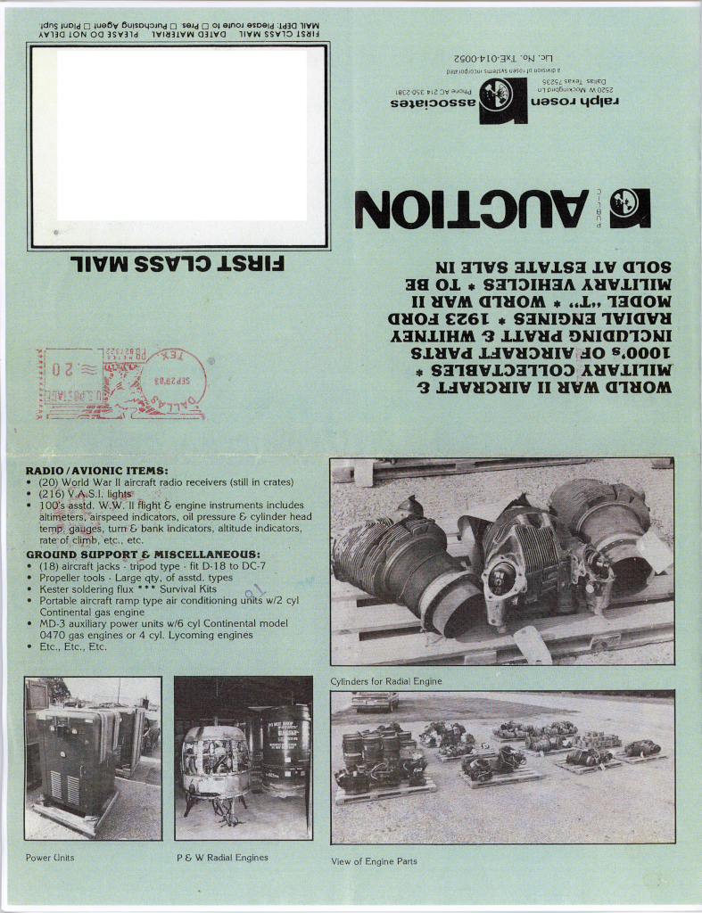 ^^^ This one missed the auction; Aero Trader bought it in 1978. The Registry lists it as sold at the 1983 auction, but the auction list only mentions three B-25s (Scott R. please check?).