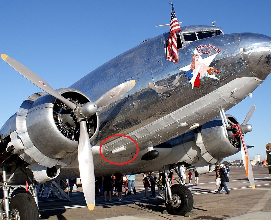 C-47s with hot air heaters had the scoops on the belly of the airplane for mixing cold air with the hot air from heat exchangers from the exhaust stacks. Earlier versions of the C-47 had steam heaters and didn’t have these scoops. Here are a couple of pages from a C-47A Flight Manual that mention the belly scoops in the text.