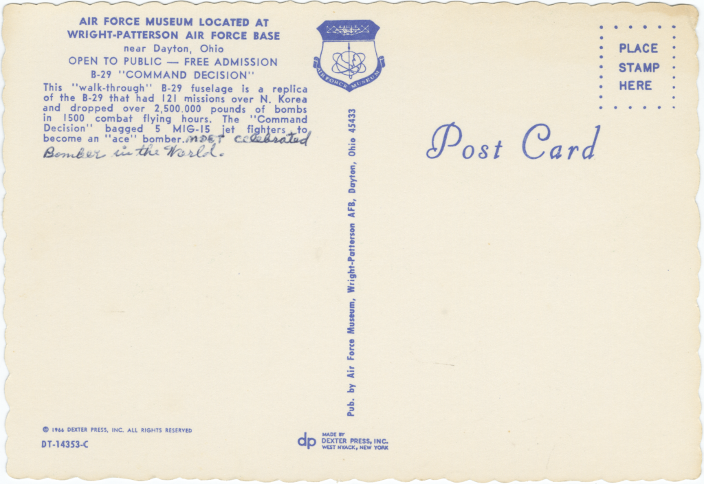 "Command Decision" was the USAF Museum's 1st B-29. It was retired to Wright-Patterson AFB around the