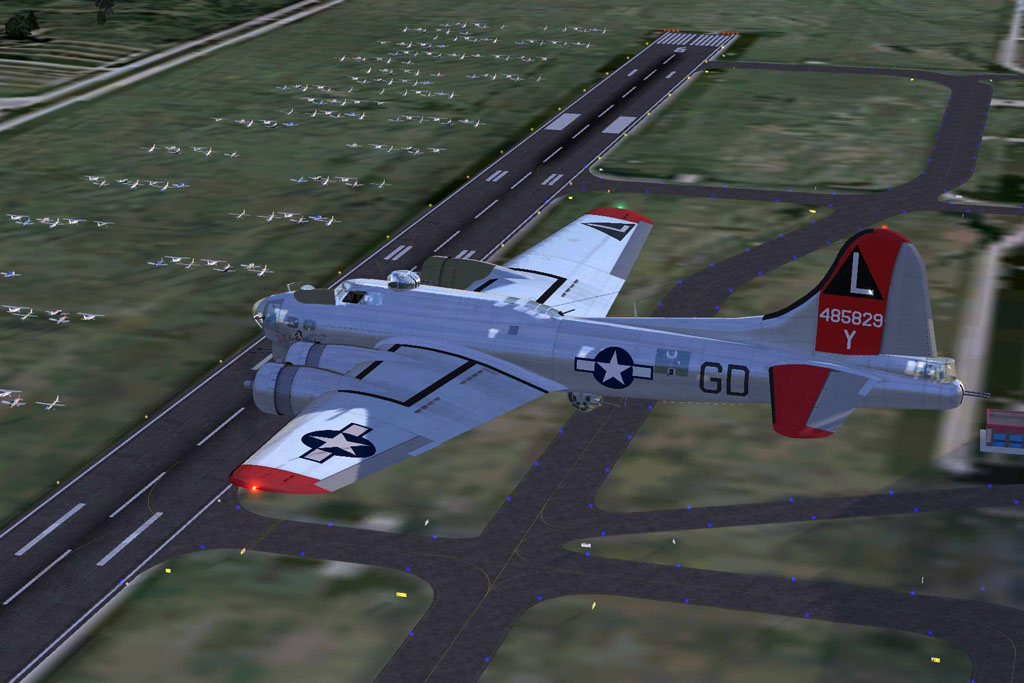 Using the same scenery as shown in my B-17 pics above, here I am looking for parking in my Swift. I was tempted to write "Vintage Parking" on a post-it and stick it in the corner of my monitor to alert the marshalers.