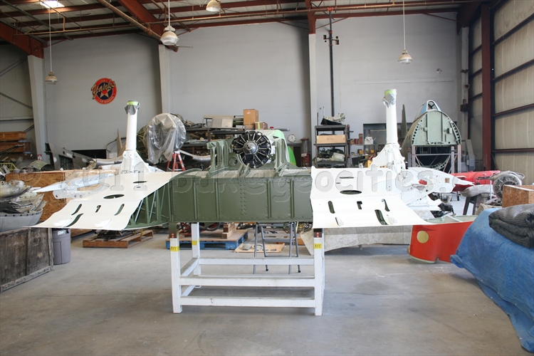 Hellcat center section nearing installation on fuselage. Some parts and identity come from a wreck on Hawaii.